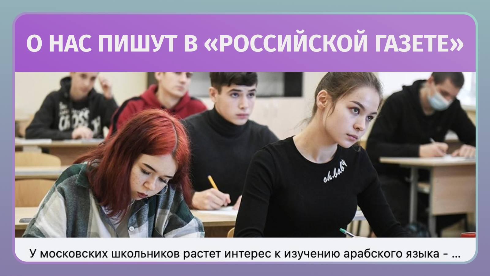 Теперь об этом написал один из ведущих федеральных ресурсов — «Российская газета». В материале подчёркивается: интерес к китайскому, арабскому и другим редким языкам стремительно растёт, и у школьников Москвы появилась возможность изучать классический арабский язык с опытными преподавателями.